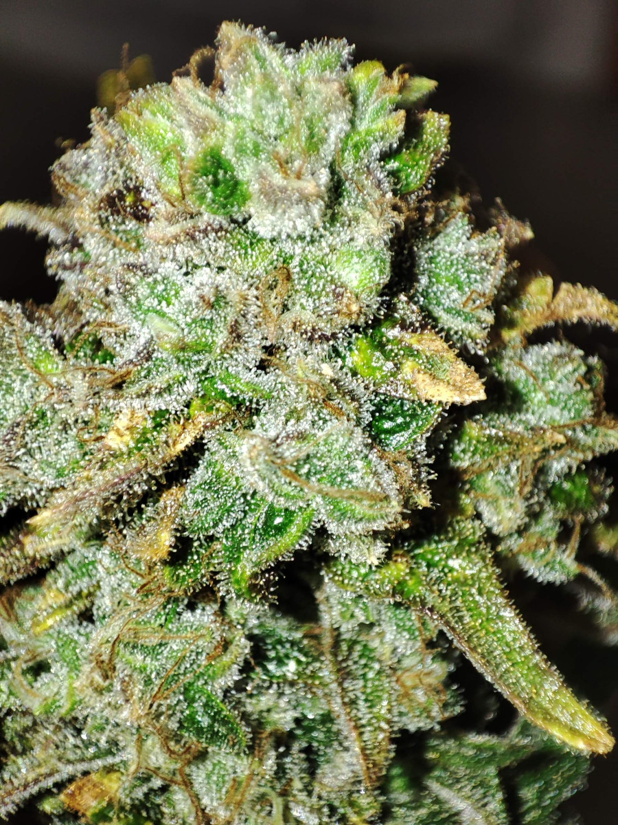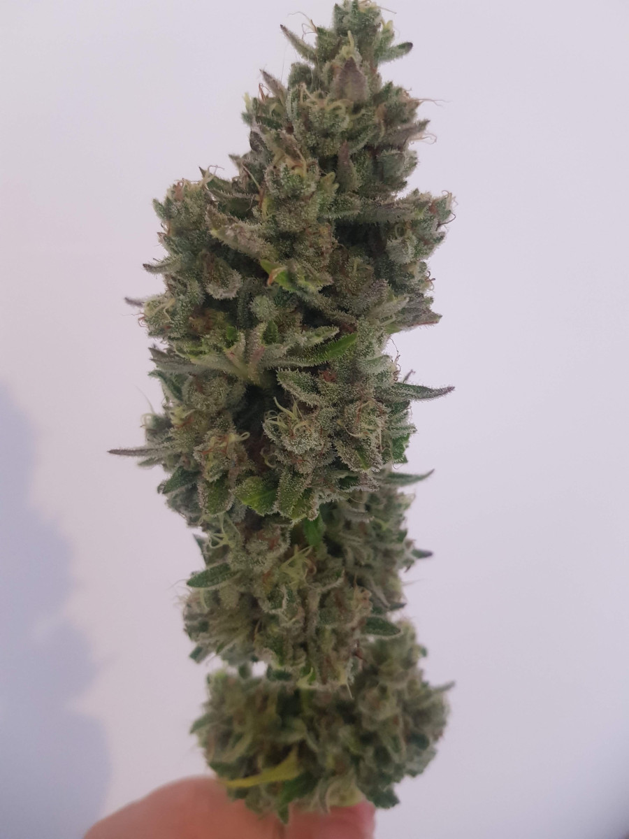 Гров и обрезка обрезка этого растения были легкими. У этого сорта отличное соотношение листьев и бутонов. Листвы мало, что сделало обрезку невероятно быстрой!! Влажный вес шишек составлял около 730 граммов, а после 6 дней сушки и 40 дней пролечивания вес сухих, твердых и покрытых инеем шишек составил 135 граммов! И это все 1 куст!