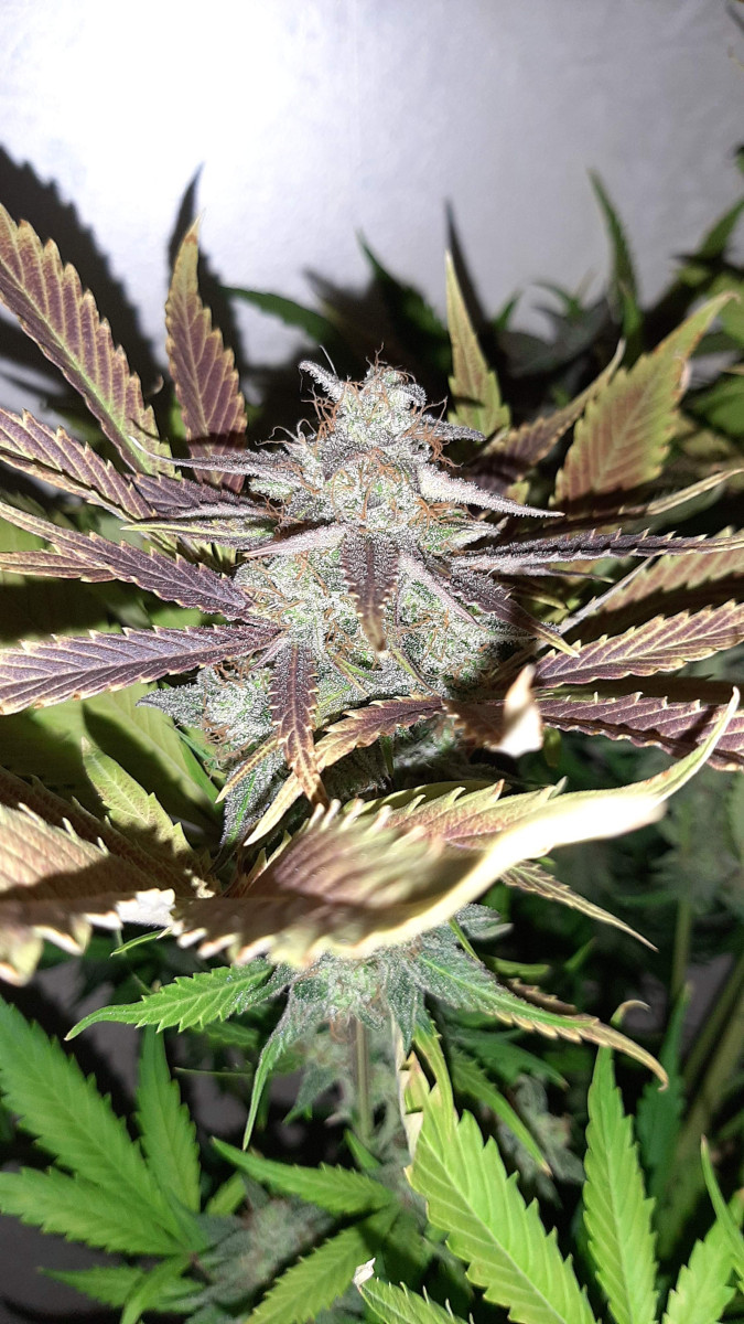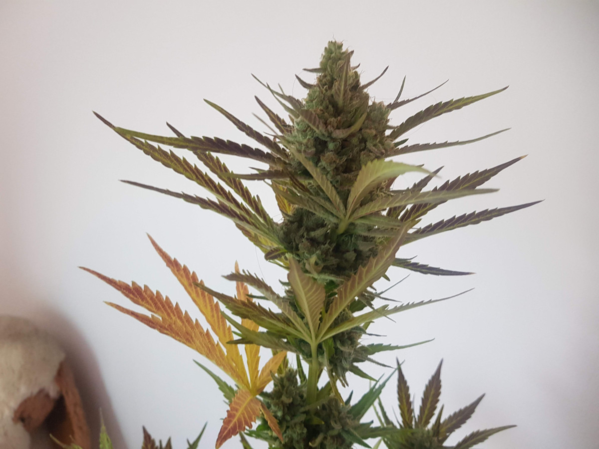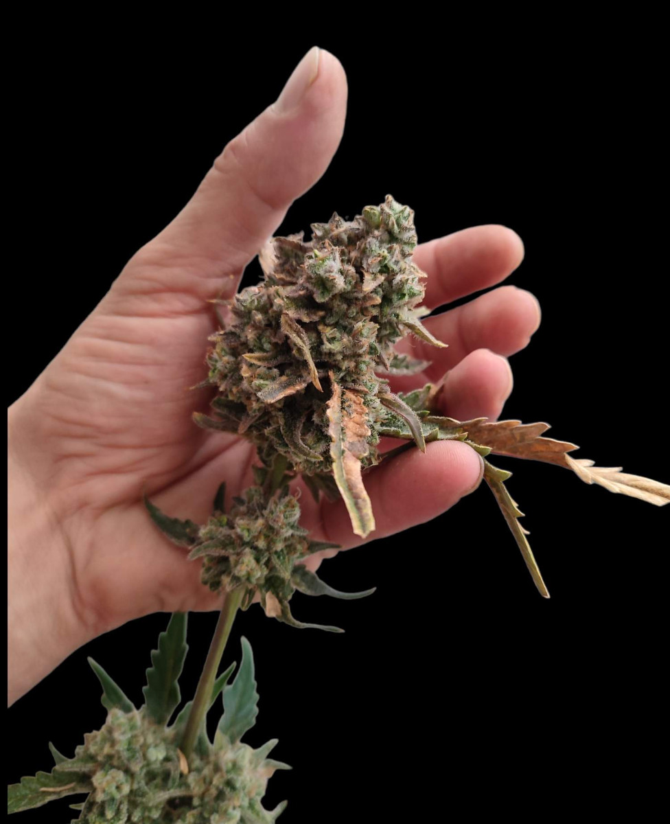 Если бы не испытанные кустом стрессы, он был бы намного больше. Но мне все равно очень нравится его внешний вид. У него плотные красивые шишки, а еще это очень выносливый и быстрый сорт. Рекомендую всем попробовать.