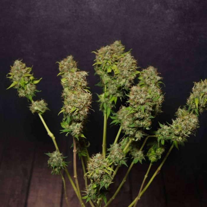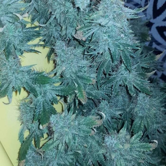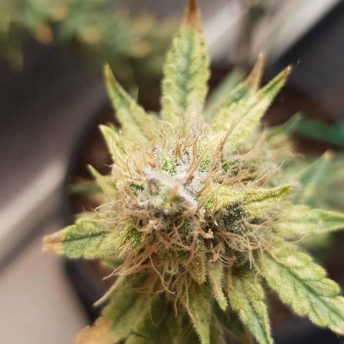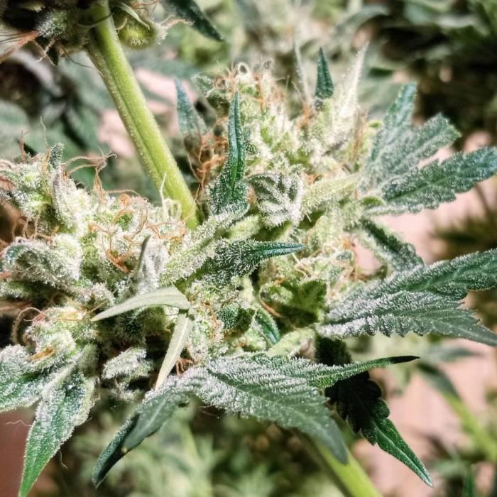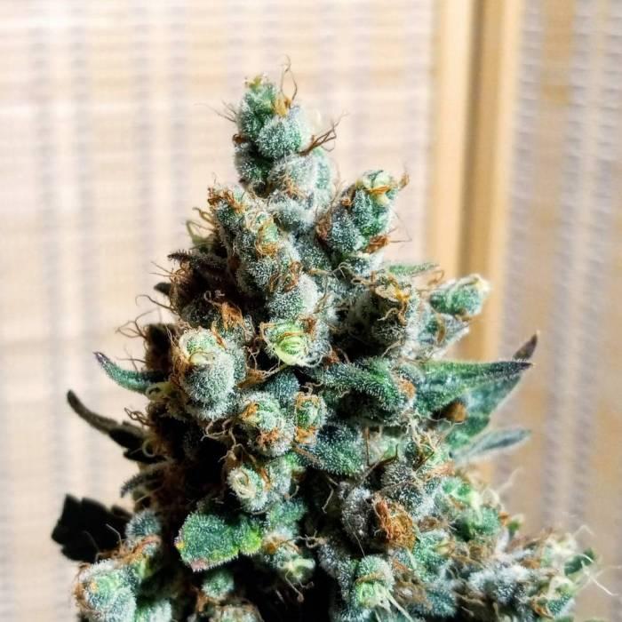 Сорт очень смолистый, трихомы повсюду, а его аромат наполняет комнату за считанные секунды.