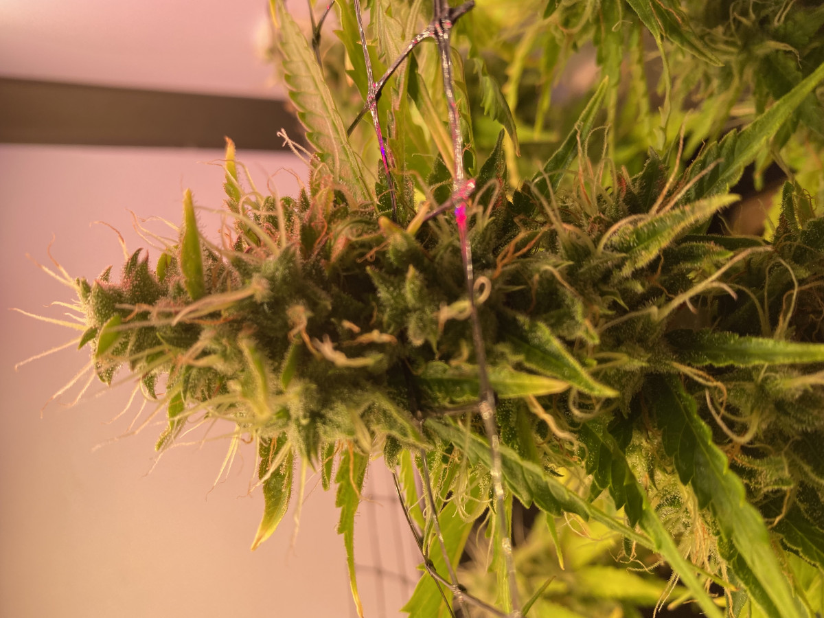 Хороший сорт, для вечернего после рабочего время отдыха. Стаф больше доминировал в большую сторону к диваному и полный релакс по телу.На фото дев.21дн.Подымаю второй раз этот сорт всё ох-но.Спасибо семянычу и его колективу.От вас у меня все орехи проклёвываются и дают прекрасный результат.Всем мир.