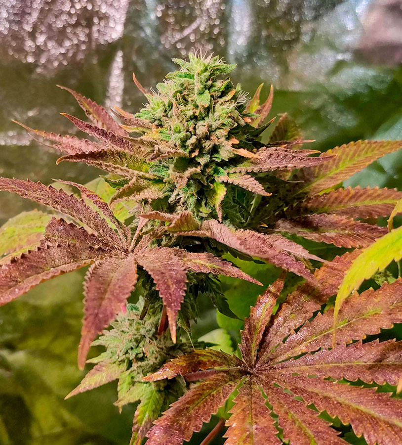 Срок созревания конопли варьируется в пределах 60-65 дней, но во многом зависит от климатических условий, рациона питания и качества света в период цветения. Шишки очень липкие и пахучие. Покрытие из крупных трихом соответствует наивысшим стандартам качества, а фиолетовые оттенки усиливают эстетику плотных бутонов с оранжевыми волосками.