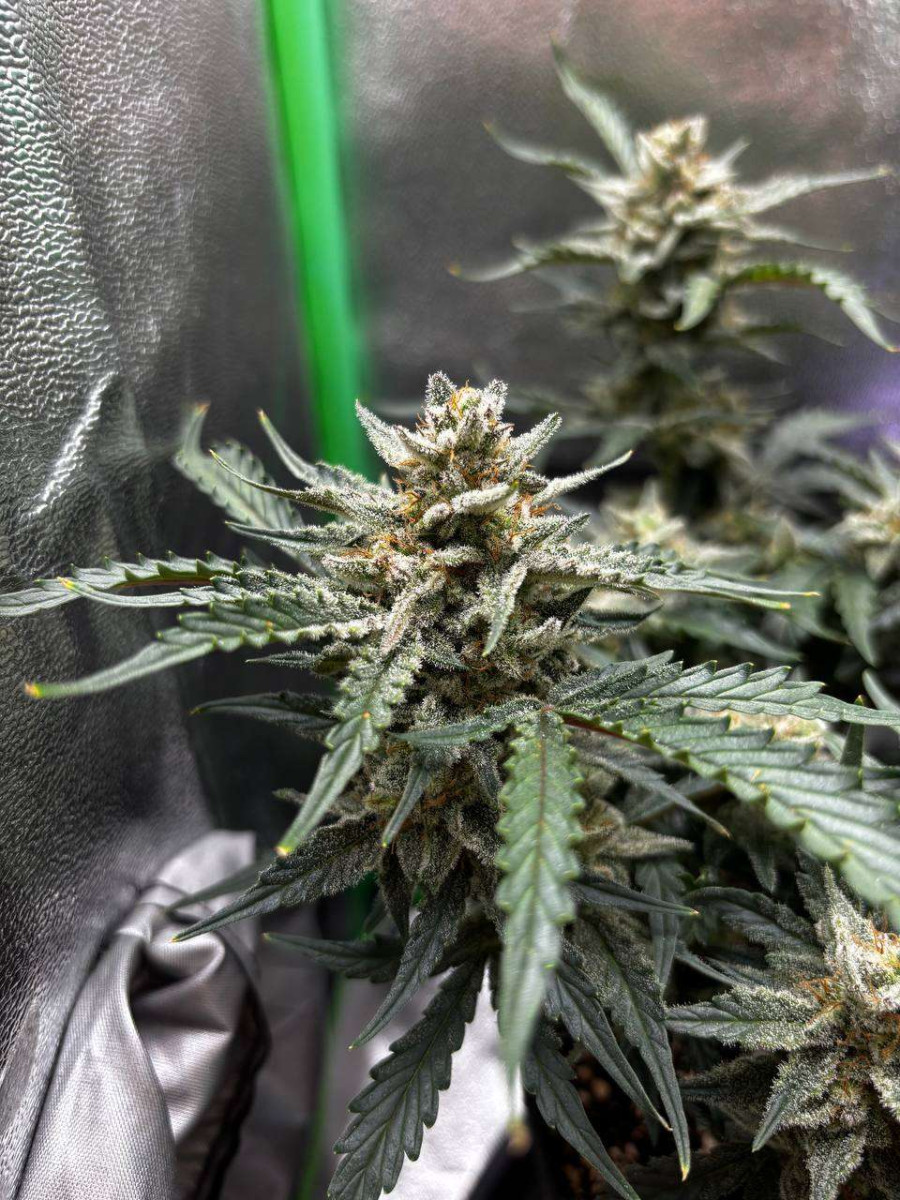 Цветение началось с 7 недели, а всего гров занял 11 недель. Очень быстро тцветает и созревает. К харвесту соцветия стали чуток розоватыми, а все стигмы рыжими.