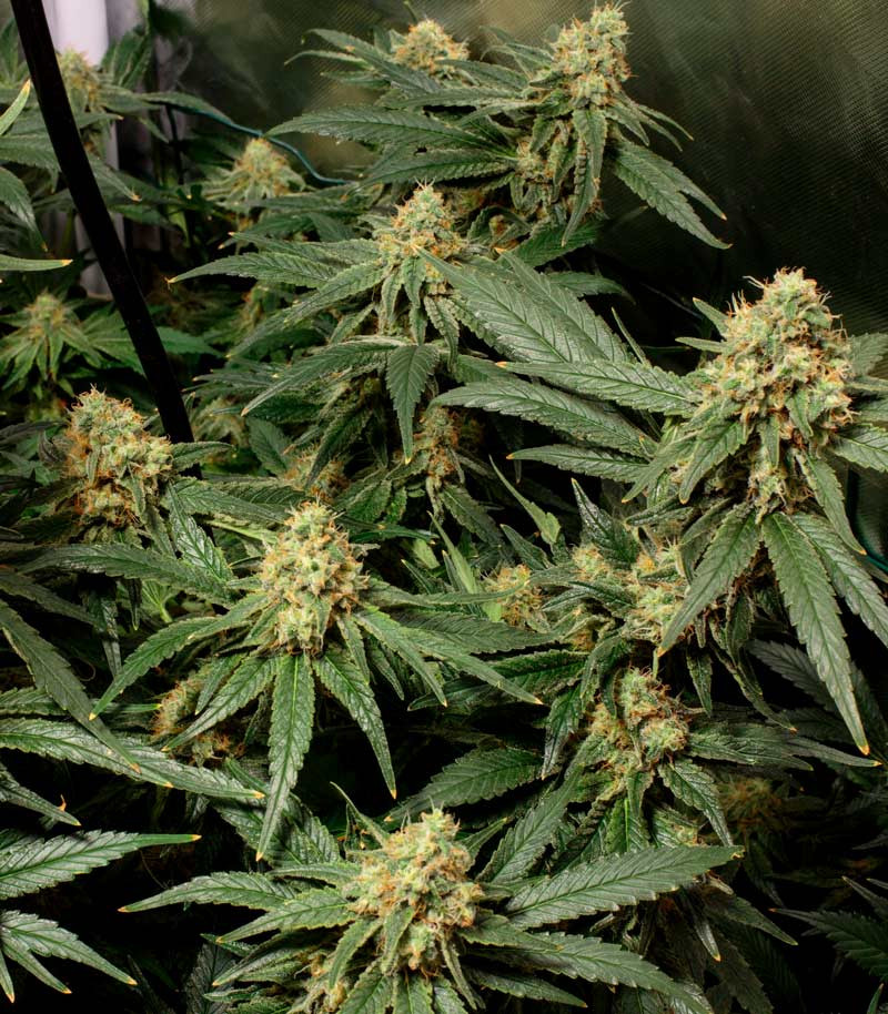 Во время цветения источает аппетитный цитрусово-землистый аромат, порой, можно учуять слабые “дизельные” ноты. К концу непродолжительного цветения, 63 – 70 дней соцветия покрываются добротным слоем морозной смолы.