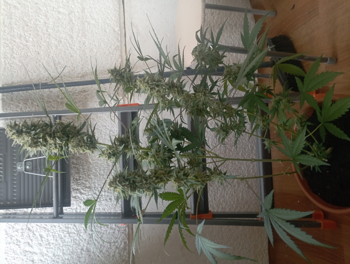 Рано срезал всего на начале 7 недели(справа причина по который решил резать) нормальный автик я их не особо чествую они как закуска, что могу сказать,сорт прям сативный листва тоненькая эффект бодрит правда и как все автики 2 часа и полностью свободен, не смотря на ранний сбор эффект довольно сильный растил просто свободно не тренировок не удобрений просто посадил пускай растут, фото особо не делал на первой ей всего 4 недели ну и колбу в конце