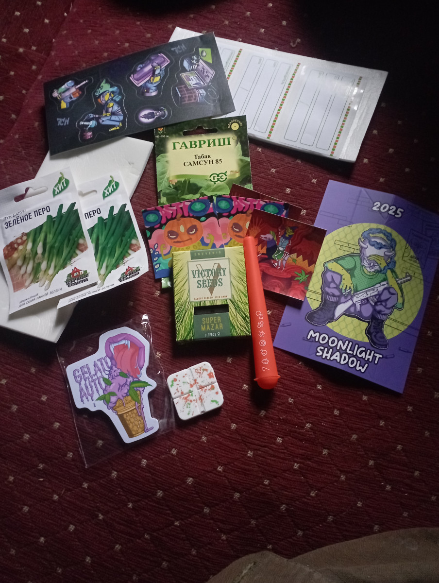 Посылка пришла быстро за 4 дня всё в лучшем виде. Подарки,наклейки, семяна земляники. Супер ?.