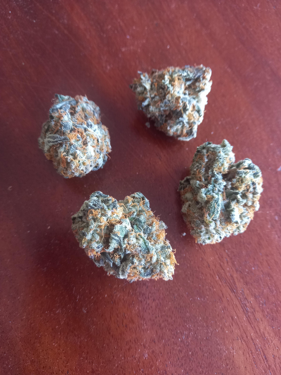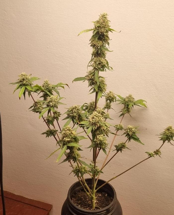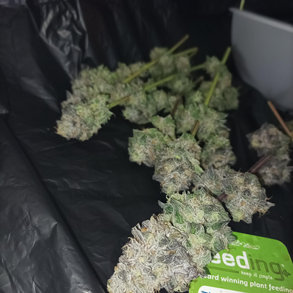 Очень и очень хороший сорт, крепкий, ветвистый, с крупными бошками и минимумом листвы в шишках. Отлично маникюрится, смолистый. Ничто не нарушает вкус. короче, я не разочарован и буду однозначно такое растить еще не раз. Урожайность отличная, если прикинуть на квадратный метр, то порядка 600 грамм можно получить, если нормальные горшки от 15 литров взять и потренировать.