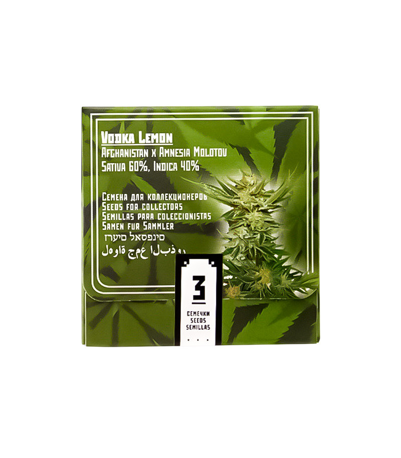 Каннабис сорта Vodka Lemon fem – это, пожалуй, один из самых необычных экспонатов в коллекции российского семенного банка Kalashnikov Seeds. Это сатива-доминантный гибрид, который растет, как типичная индика, а по своему головокружительному high-эффекту стоит в одном ряду с такими монстрами сативного семейства, как Kali Mist и Amnesia Haze.