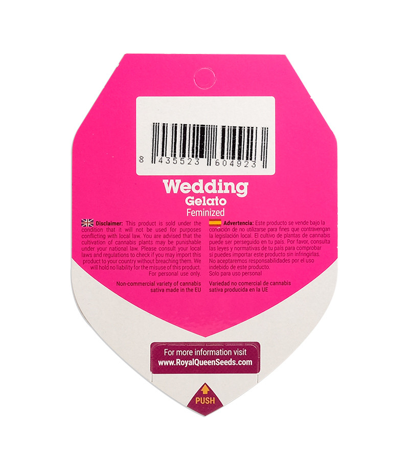 Испанские бридеры из Royal Queen Seeds потрудились на славу, работая над Wedding Gelato, в котором 40% ДНК приходится на сативу, а оставшиеся 60% – на индику. Комбинация генов прославленных Wedding Cake, Gelato и Gelato 33 позволила получить выдающийся гибридный сорт, который унаследовал от «родителей» лучшие черты. Конопля сохранила внушительный уровень ТГК в 20-25%, как у Gelato 33, а за вкусовые качества нужно благодарить оригинальный «Свадебный торт».