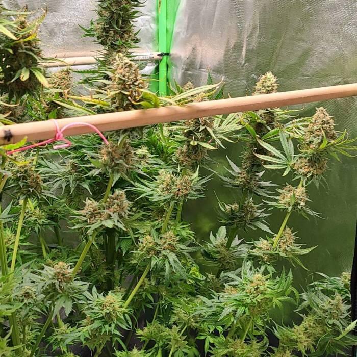 Так получилось, что именно этот сорт был засунут вглубь гроутента, и поэтому не показал столь выдающихся результатов, как остальные растихи, но все равно рос хорошо и шишки дал классные. Сорт на 9\10.