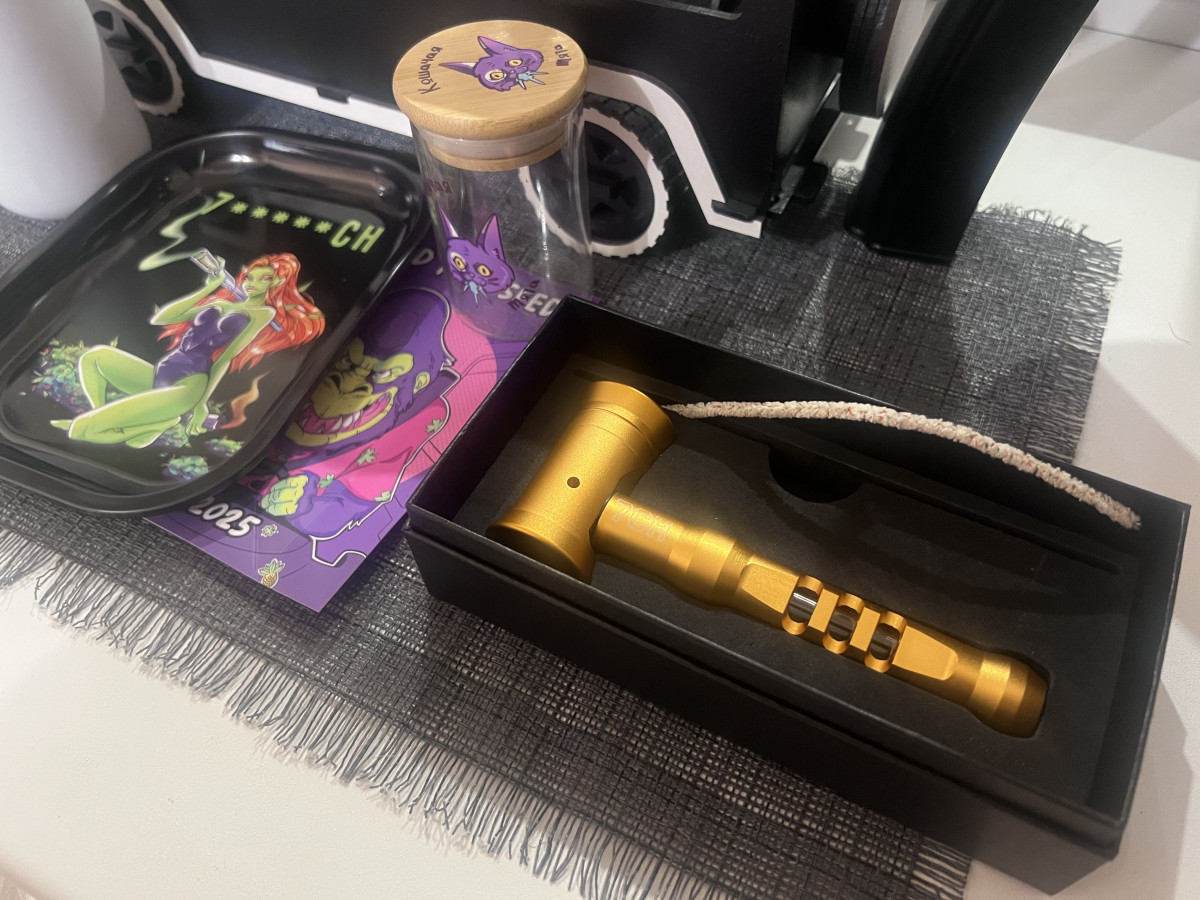 Ребята это,что за зверь такой, массивный,думала прикуплю себе трубочку в дамскую сумочку,с сексуальным названием “Hammer”,не посмотрев на габариты данного девайса,по и тогу вскрыв подарочную коробочку(круче чем из под айфона)обомлела,с таким девайсом и мясо отбить и почки,и для суда вместо молотка,да,что уж там,гвоздь забить,вообщем девайс классный,качественный ооочень большой (не для женской руки),буду «кататься» на Hammer’Е дома,ах да и цвет не золотой,как на фото,а скорее оранжевый,но тоже приятный,всем хорошего вайба,чувствую хамер у меня угонят,буду покупать Blast,надеюсь он,то в сумочку,поместиться ;D